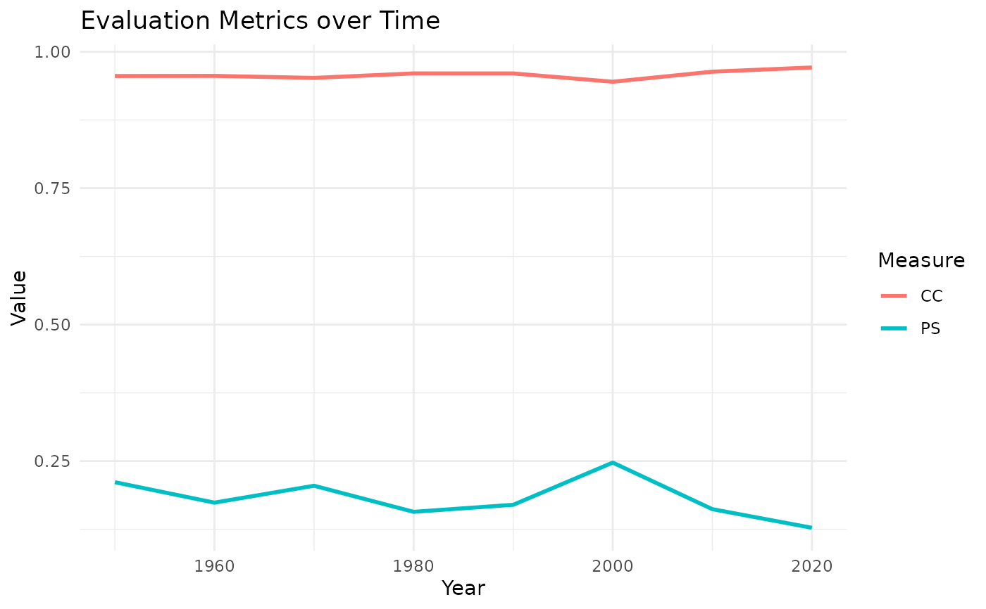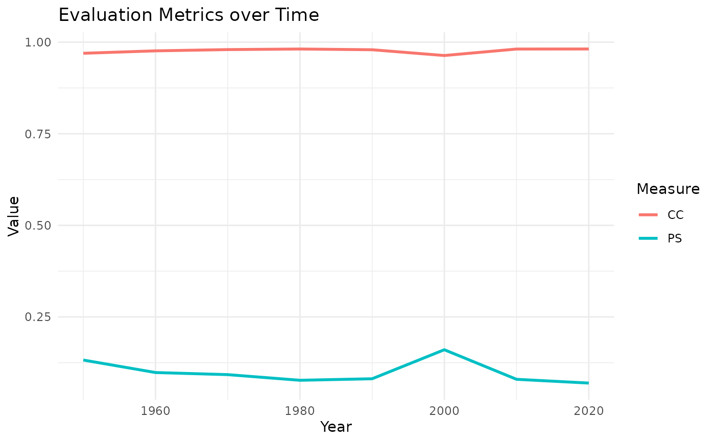 Returns a line plot with the fit measures that are bounded between zero and one: PS and CC. A small PS value and large CC value indicate good fit.